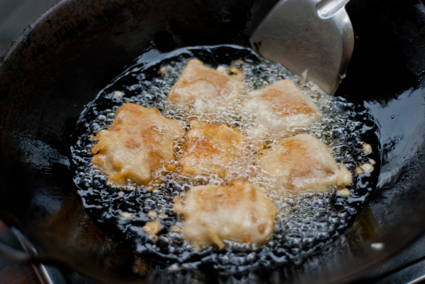Give it a couple of turns. Fry till brown and crispy, about 3-5 minutes. Remove from heat and serve warm with fresh chili or bottled chili sauce.